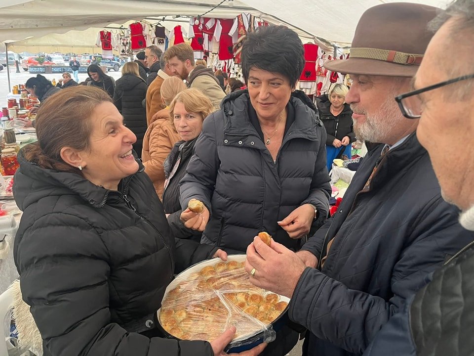 Me aktivistë e bashkëpunëtorë takuar qytetarë e zejtarë dhe vizituan panairin e zonjave të nderuara artizane në sheshin e qytetit.
