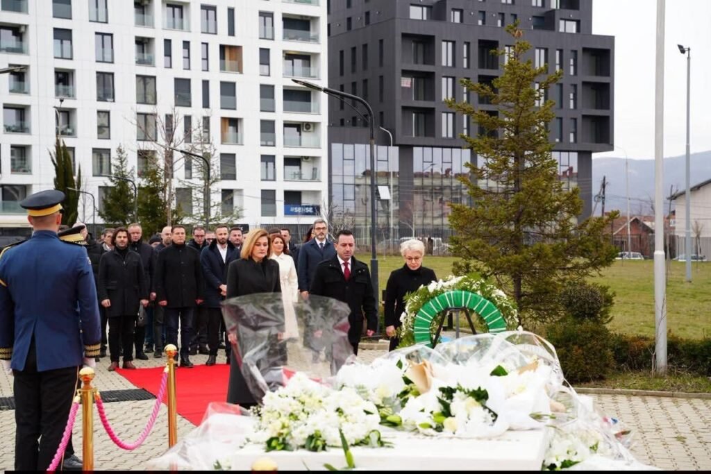 “Sot, me përulje dhe respekt, bëmë homazhe dhe vendosëm lule të freskëta te varri i Presidentit historik, Ibrahim Rugova, në 20-vjetorin e ndarjes së tij nga jeta. Përkujtimi i tij nuk është vetëm një akt nderimi, por një rikujtim i fuqishëm i rrugës që ai i dha popullit dhe shtetit tonë. Presidenti Ibrahim Rugova mbetet një figurë madhore e historisë sonë kombëtare, arkitekt i vizionit për një Kosovë të lirë, të pavarur dhe të ndërtuar mbi paqe, dije dhe dinjitet njerëzor. Në kohët më të errëta për popullin tonë, ai zgjodhi mençurinë mbi dhunën, dialogun mbi hakmarrjen dhe dijenë mbi frikën”, është shprehur ajo.